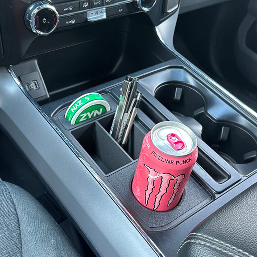 About This modular compartment utilizes the storage pocket in center consoles equipped in 2021-2025 Ford F-150 trucks. The OEM rubber liner in the ...