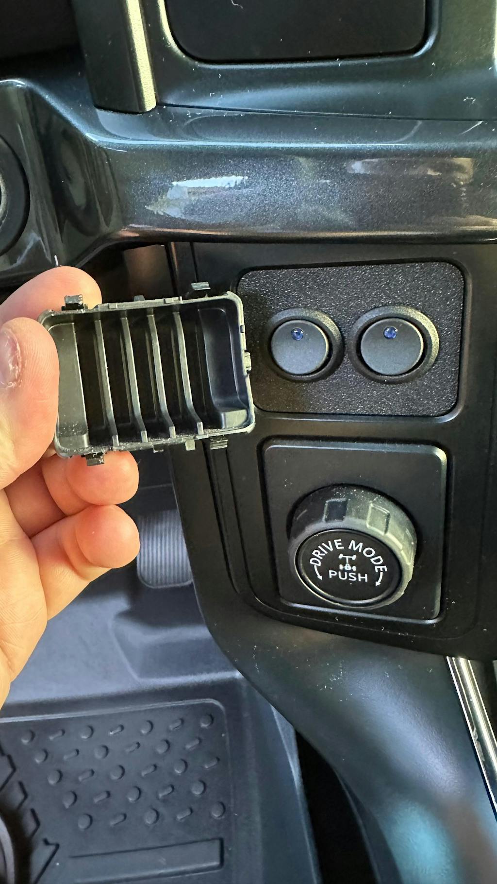 Intended for 2021-2025 Ford F150 trucks equipped with the coin holder insert and without the OEM trailer brake controller moduleAllows user to replace the factory installed coin holder with the ability to mount either 1 rectangular rocker switch (21mm x 37mm), or 1-2 round rocker switches (20mm). Also available as a blank panel.